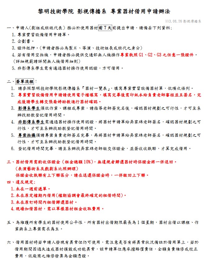 113-1 影傳系專業器材借用辦法